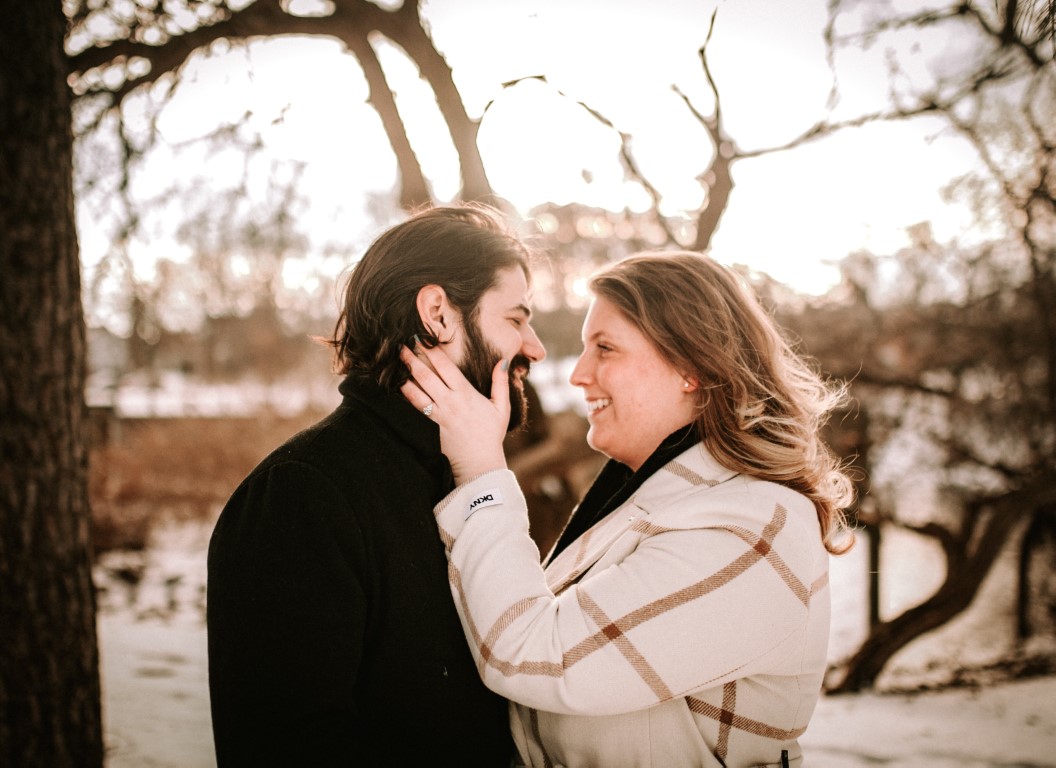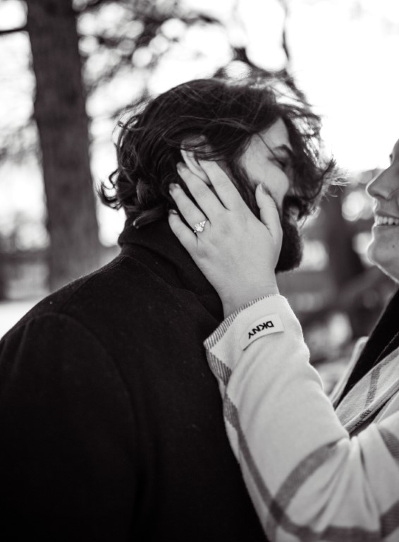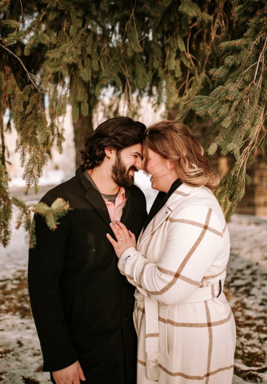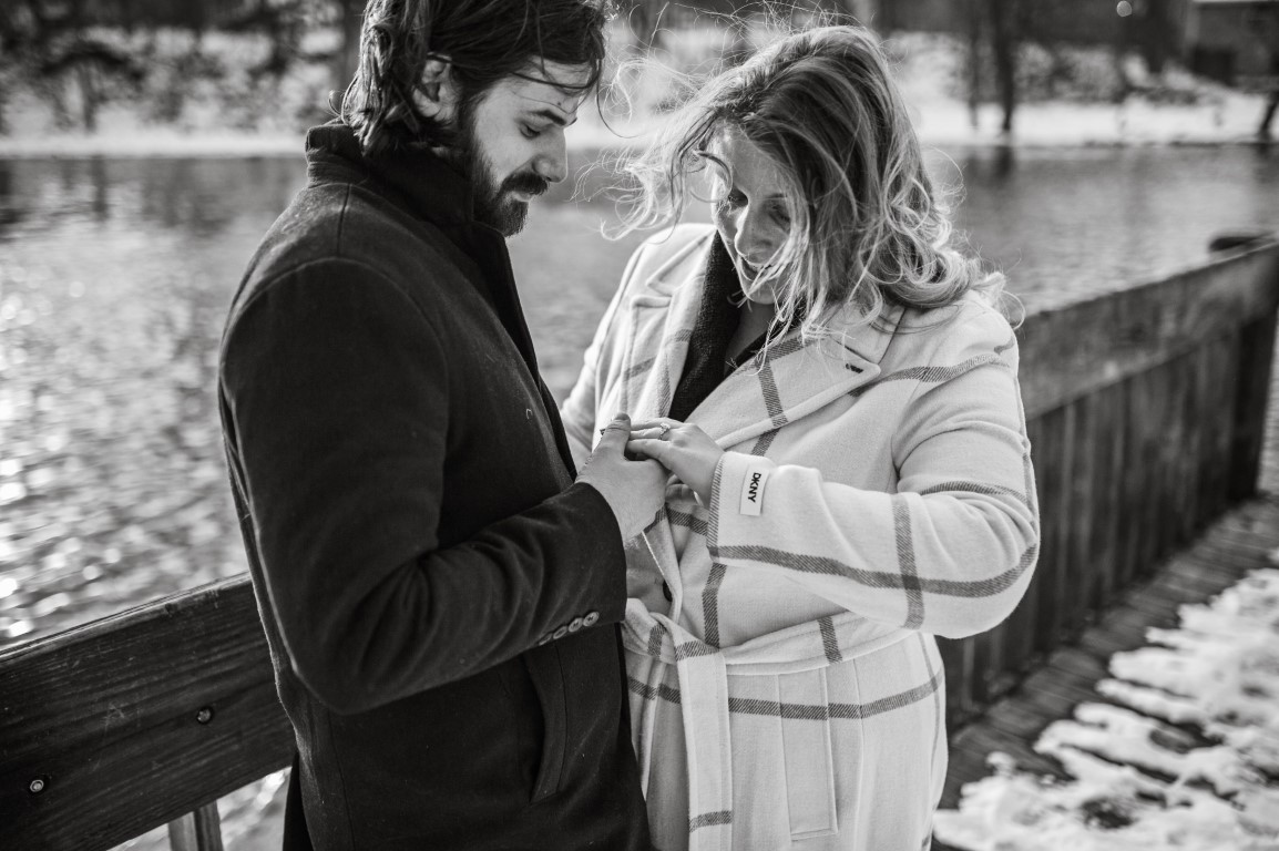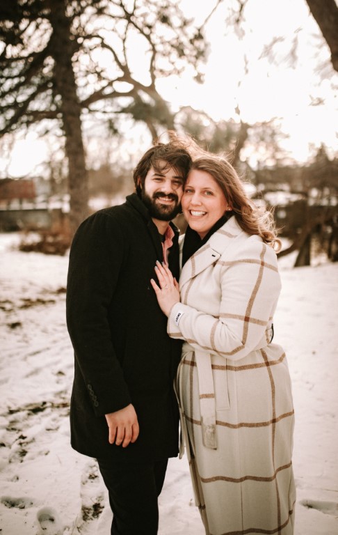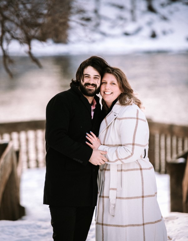 Johanan planned every detail and got so many of our loved ones in on it to keep it a complete secret from Alexandra for nearly 4 months. We went down to Old Town Lansing where we had our first date, to walk along the river and grab a coffee at the cafe where we met. We walked down to a little overlook over the water just to enjoy the view, and then Alexandra spotted a random photographer in the background. She asked "Why is there a photographer out here?" which Johanan naturally thought was her calling him out on what was going on and immediately got down on one knee to Alexandra's COMPLETE shock. One photo shoot later, he whisked her away to a cocktail hour with our friends and family (including arranging some folks to fly in and train in to celebrate) and catered dinner at our home with everyone afterwards which had been expertly decorated in record time.